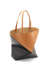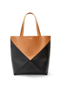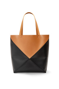 The Puzzle Fold Tote takes the iconic bag’s signature geometric lines and reimagines them in graphic and architectural panels that allow the bag to fold completely flat, making it the perfect travel companion. Soft, lightweight and inventively crafted, it is finished with discreet LOEWE branding. This large bicolour version is crafted in shiny calfskin. - Shoulder or hand carry - Suede lining - Gold embossed LOEWE Details - Colour: Black/Warm Desert - Main material: Shiny Calf - Handle drop: 26 cm - Weight: 0.65 kg - Height (cm): 41 - Width (cm): 42 - Depth (cm): 18 - Height (inch): 16.1 - Width (inch): 16.5 - Depth (inch): 7.1 - Model ID: B779Q18X05 - CIL: 0010927622 - Made in: Spain