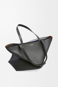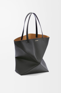 The Puzzle Fold Tote takes the iconic bag’s signature geometric lines and reimagines them in graphic and architectural panels that allow the bag to fold completely flat, making it the perfect travel companion. Soft, lightweight and inventively crafted, it is finished with discreet LOEWE branding. This large version is crafted in shiny calfskin. - Shoulder or hand carry - Suede lining - Gold embossed LOEWE Details - Colour: Black - Main material: Shiny Calf - Handle drop: 33 cm - Weight: 0.6 kg - Height (cm): 41 - Width (cm): 42 - Depth (cm): 18 - Height (inch): 16.1 - Width (inch): 16.5 - Depth (inch): 7.1 - Model ID: B933Q18X01 - CIL: 0010896694 - Made in: Spain