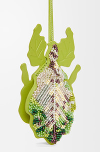 Leaf insect keyfob charm in beaded leather entirely embroidered by hand with a looped calfskin strap and a keyring. Details - Colour : Meadow Green - Metallic colour : Gold - Main material : Classic Calf/Beads - Weight : 0.03 kg - Width (cm) : 47 - Depth (cm) : 6.1 - Width (inch) : 18.5 - Depth (inch) : 2.4 - Model ID : C621232XJ1 - CIL : - 0011182649 - Made in : Spain