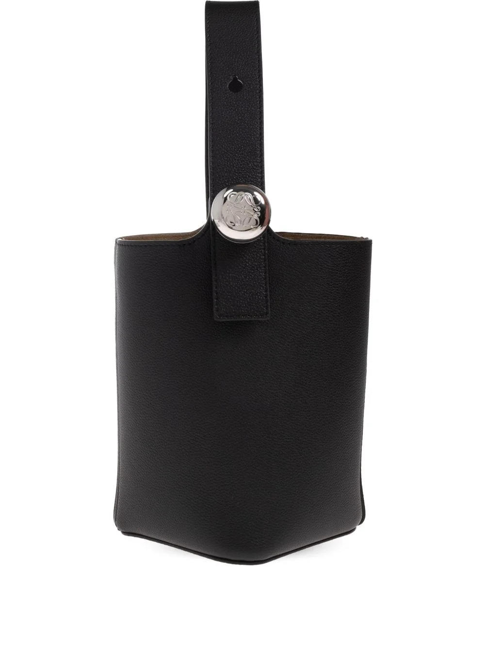 leather top-handle mini bag Highlights - Black - Lambskin leather - Top handle - Button detail - Debossed logo - Bucket shape Imported Composition Outer: Lambskin 100% SIZE & FIT Measurement HEIGHT 11.81 in(30 cm) WIDTH 9.84 in(25 cm)