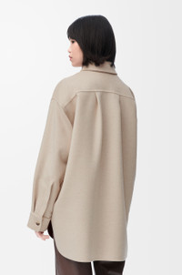 Overshirt in lightweight double face wool and cashmere featuring a curved hem. - Relaxed fit, long length - Classic collar - Concealed button front fastening, buttoned cuffs - Seam pockets - Anagram embossed leather patch pocket placed on the chest Details - Colour : Light Beige Melange - Main material : Wool/Cashmere - Weight : 0.8 kg - Model ID : S359Y02XD5 - Made in : Italy