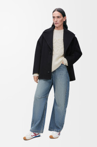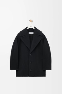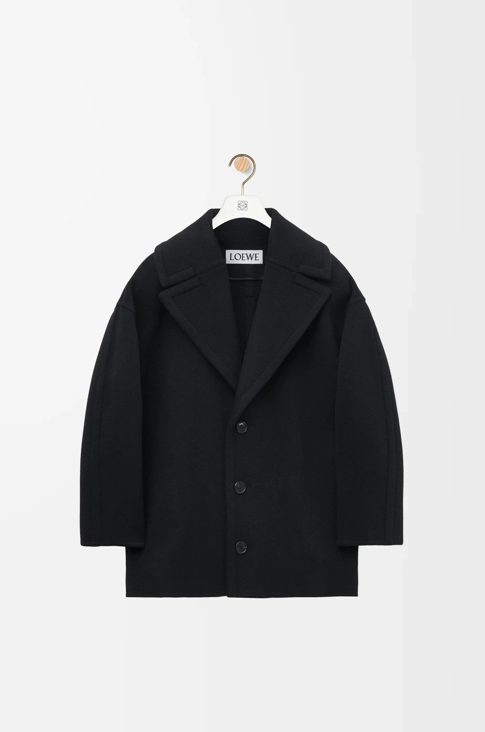 Coat in medium-weight wool featuring a cocoon silhouette with exaggerated lapels. - Relaxed fit, short length - Single-breasted - Button front fastening - Seam pockets - LOEWE Anagram embossed leather patch placed at the back Details - Colour : Black - Main material : Wool - Weight : 1.5 kg - Model ID : S359Y01XD8 - Made in : Italy