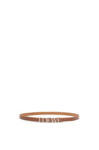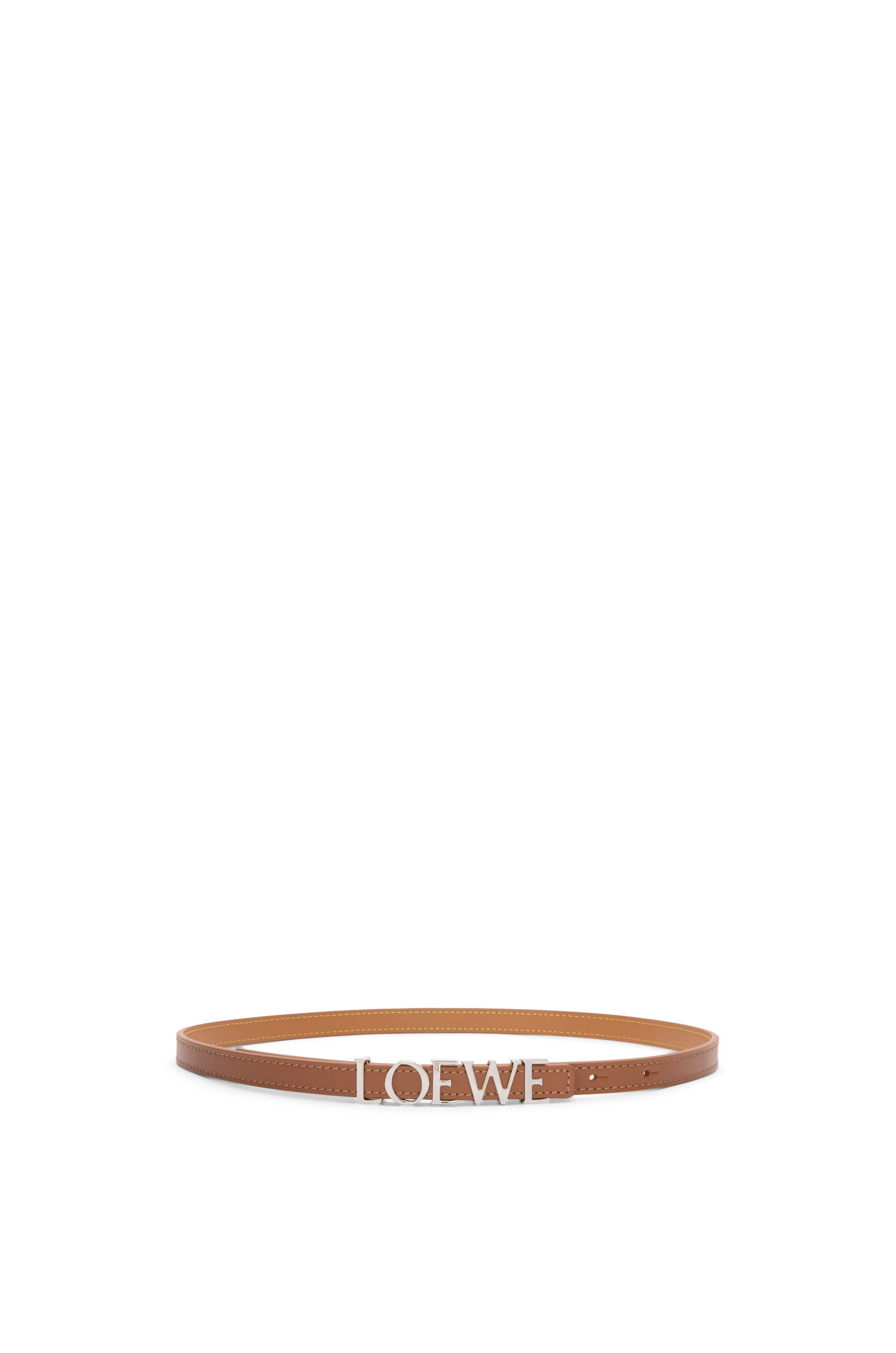 Belt in smooth calfskin. - LOEWE buckle - Anchor buckle - 1.5cm wide - Five holes regulation Details - Colour : Tan/Palladium - Metallic colour : Palladium - Main material : Smooth Calf - Weight : 0.062 kg - Depth (cm) : 1.5 - Depth (inch) : 0.6 - Model ID : E619Z16X16 - Made in : Spain