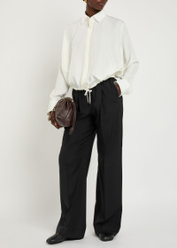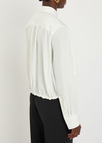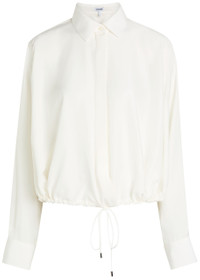 Info & Care Loewe silk-crepe shirt Button-fastening cuffs, logo embroidery at cuff,;box pleat at back, drawstring hem Partially concealed button fastenings through front 100% silk Dry clean Size & Fit Length shoulder to hem: 20.5 inches/ 52cm Midweight Relaxed, boxy fit Model is 5'9"/ 175cm and wears a size;FR38