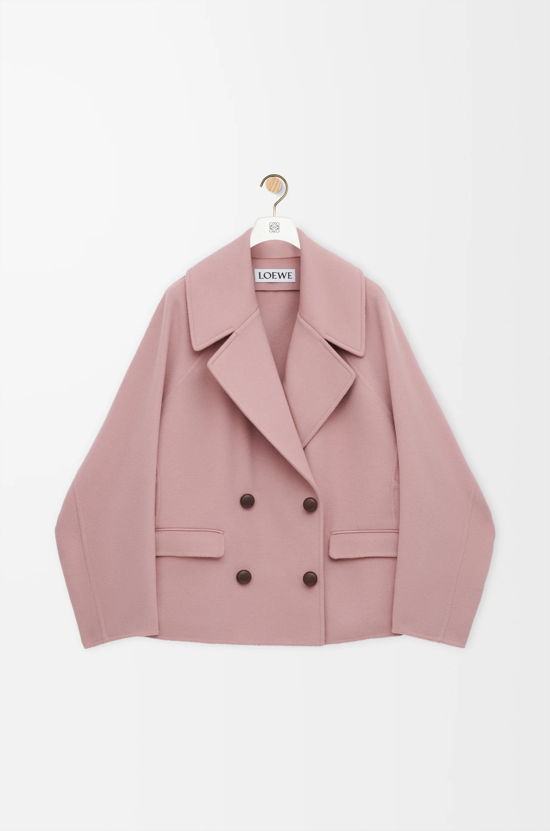 Coat in medium-weight wool featuring a double-breasted construction. - Relaxed fit, short length - Notch lapel - Snap button front fastening - Raglan sleeves - Gusset flap pockets - Leather-covered Anagram Pebble buttons Colour: Pink Main material: Wool Weight: 1.36 kg Made in: Italy Materials & care Main Material: 100% wool