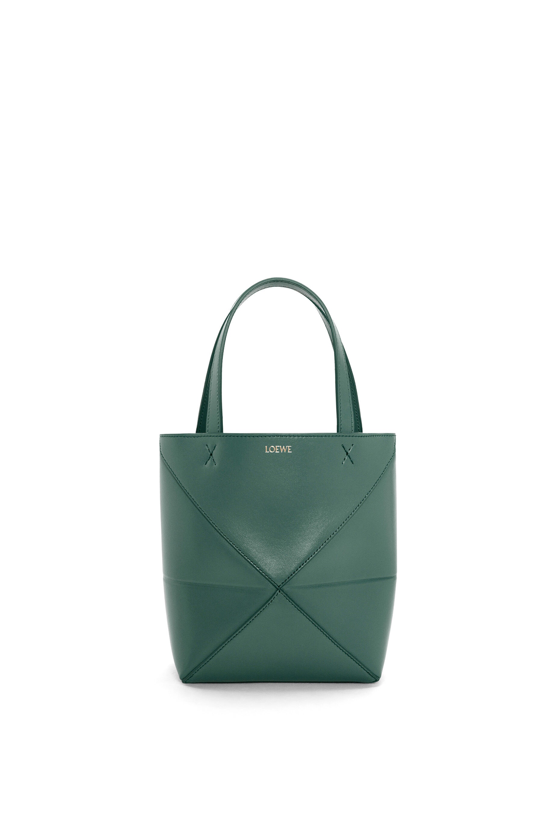 The Puzzle Fold tote is a soft and lightweight design inspired by the iconic bag, whose geometric lines are reimagined as graphic and architectural panels engineered to fold completely flat. This mini version is crafted in shiny calfskin. - Shoulder, crossbody or hand carry - Detachable and adjustable strap - Suede lining - Gold or silver embossed LOEWE Details - Colour : Vetiver - Metallic colour : Gold - Main material : Shiny Calf - Strap length : 99 - 114 cm - Strap Drop : 48 - 55 cm - Handle drop : 14 cm - Weight : 0.2 kg - Height (cm) : 20 - Width (cm) : 16.5 - Depth (cm) : 9.5 - Height (inch) : 7.9 - Width (inch) : 6.5 - Depth (inch) : 3.7 - Model ID : A657V25X01 - CIL : - 0011189503 - Made in : Spain