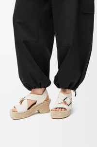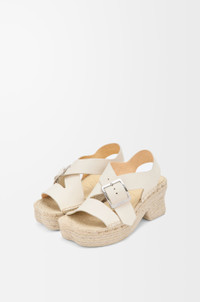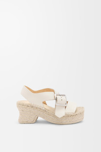 Espadrille platform sandal in soft calfskin featuring a hand-stitched strappy upper with a LOEWE-engraved buckle and the signature petal toe shape. - 25mm heel - Embossed Anagram - Handmade jute sole, leather outsole - Suede lining Colour: White Main material: Soft Calf Weight: 1.0 kg Made in: Spain