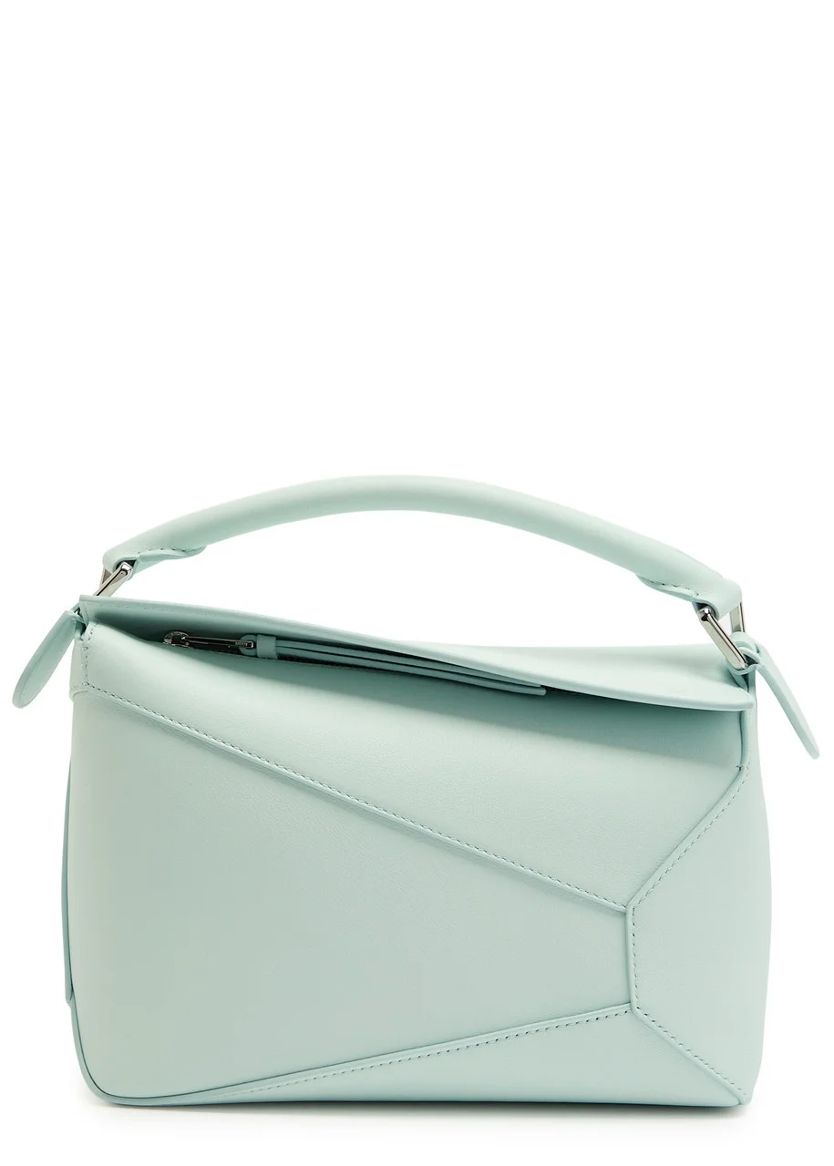 Info & Care Loewe leather top handle bag; Detachable adjustable shoulder strap, top handle, debossed Anagram logo, panelled, zip fastening at back, internal slip pocket, fully lined; Concealed zip fastening at top Size & Fit Width: 9.5 inches/ 24cm Height: 6 inches/ 15cm; Depth: 4.5 inches/ 11.5cm Top handle drop: 2 inch/ 5cm Min. shoulder strap drop:;15 inches/ 38cm Max. shoulder strap drop: 22 inches/ 56cm