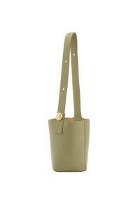 The Pebble Bucket is defined by minimalistic lines and a functional Anagram Pebble that allows to adjust strap length. This medium version is crafted in mellow calfskin. - Shoulder or crossbody carry - Adjustable strap - One internal pocket - Bonded suede lining - Engraved Anagram Details - Colour : Eucalyptus Green - Metallic colour : Gold - Main material : Mellow Calf - Strap length : 40 - 106 cm - Strap drop : 18 - 50 cm - Weight : 0.65 kg - Height (cm) : 28 - Width (cm) : 24.5 - Depth (cm) : 23.5 - Height (inch) : 11 - Width (inch) : 9.6 - Depth (inch) : 9.3 - Model ID : AANBBBWX01 - CIL : - 0011182052 - Made in : Spain