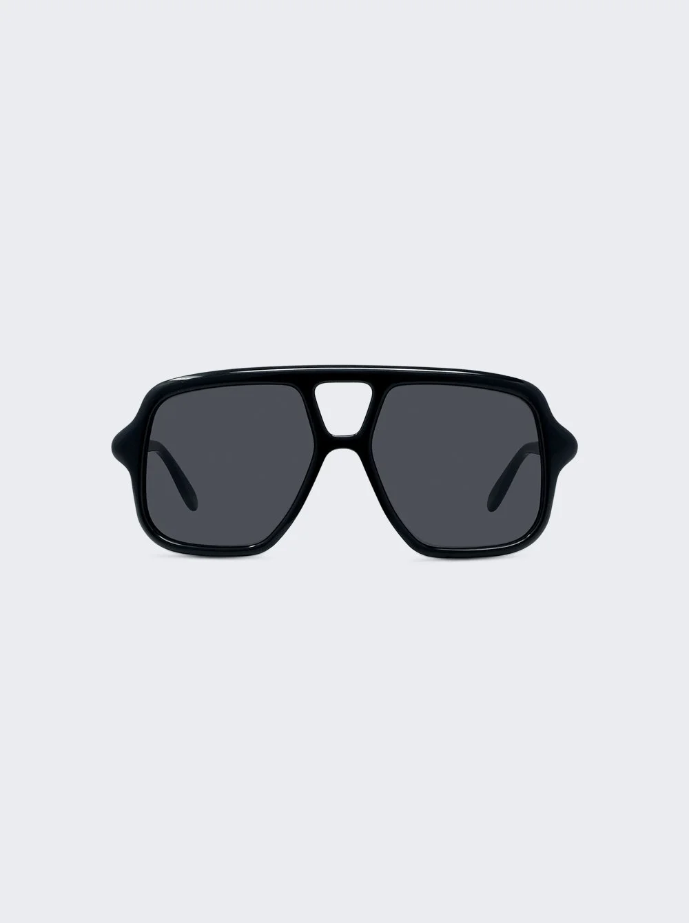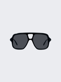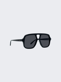 Aviator Slim Sunglasses Shiny Black And Smoke Lenses