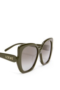 Oversized sunglasses in a slim acetate construction with LOEWE in a gold finish on the temple. - Adjusted fit - 100% UVA/UVB protection Details - Colour : Shiny Khaki - Main material : Acetate - Weight : 0.042 kg - Lens size (cm) : 5.4 - Lens size (inches) : 2.1 - Bridge size (cm) : 1.5 - Bridge size (inches) : 0.6 - Temple size (cm) : 14 - Temple size (inches) : 5.5 - Model ID : G735SUNX11 - CIL : - 0011048204 - Made in : Italy