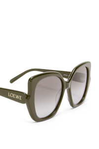 Oversized sunglasses in a slim acetate construction with LOEWE in a gold finish on the temple. - International fit - 100% UVA/UVB protection Details - Colour : Shiny Khaki - Main material : Acetate - Weight : 0.042 kg - Lens size (cm) : 5.4 - Lens size (inches) : 2.1 - Bridge size (cm) : 1.7 - Bridge size (inches) : 0.7 - Temple size (cm) : 14 - Temple size (inches) : 5.5 - Model ID : G735SUNX09 - CIL : - 0011048246 - Made in : Italy