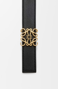 Reversible belt in supple grained calfskin. - Anagram pin buckle - 2.8cm wide - Five holes regulation Colour: Black/Gold Metallic colour: Gold Main material: Supple Grained Calf Weight: 0.087 kg Depth: 2.8 cm Made in: Spain