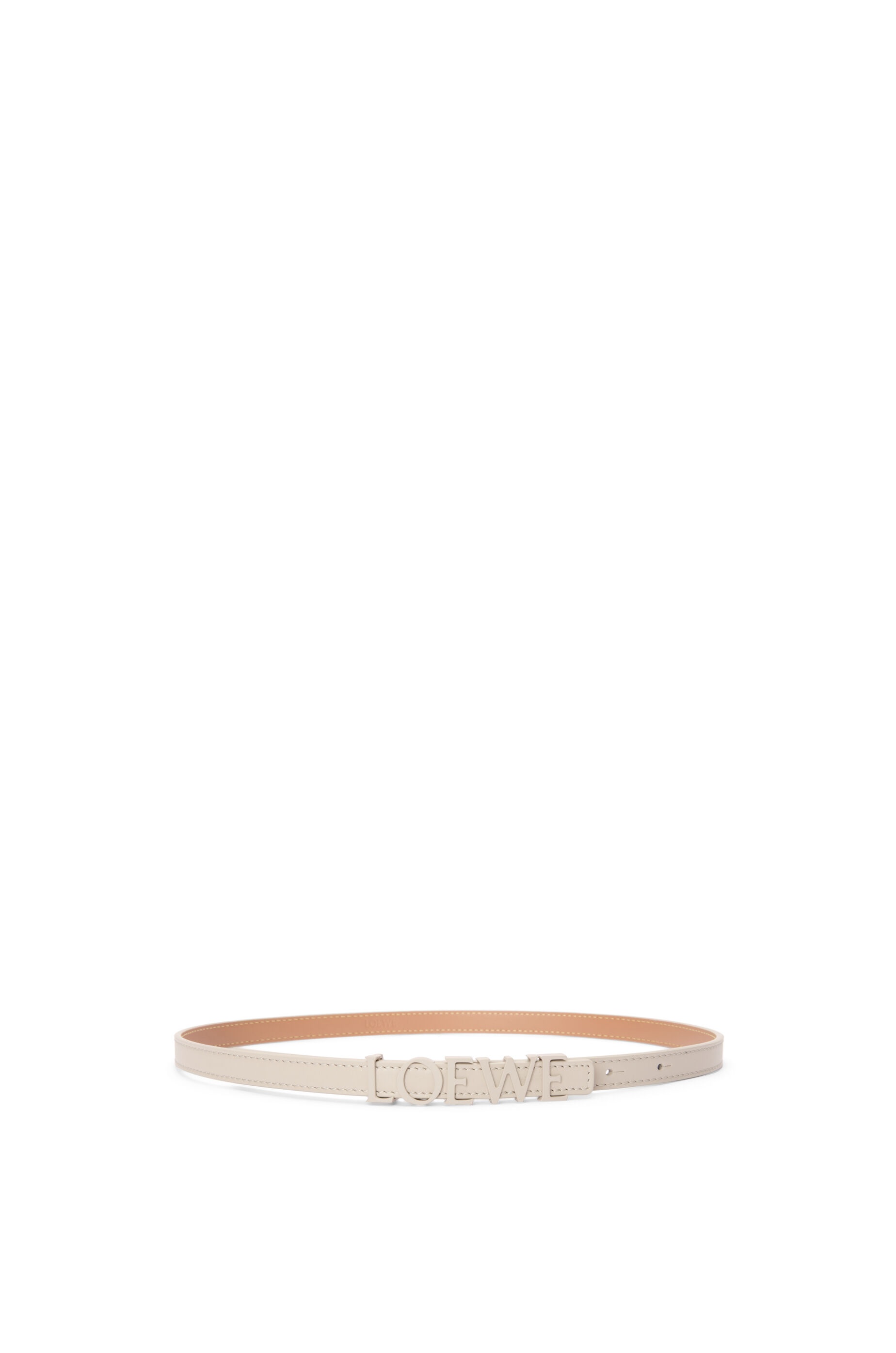 Belt in smooth calfskin with tonal hardware. - LOEWE buckle - Anchor buckle - 1.5cm wide - Five holes regulation Details - Colour : Light Oat - Metallic colour : Beige - Main material : Smooth Calf - Weight : 0.6 kg - Depth (cm) : 1 - Depth (inch) : 0.4 - Model ID : E61911BX06 - Made in : Spain