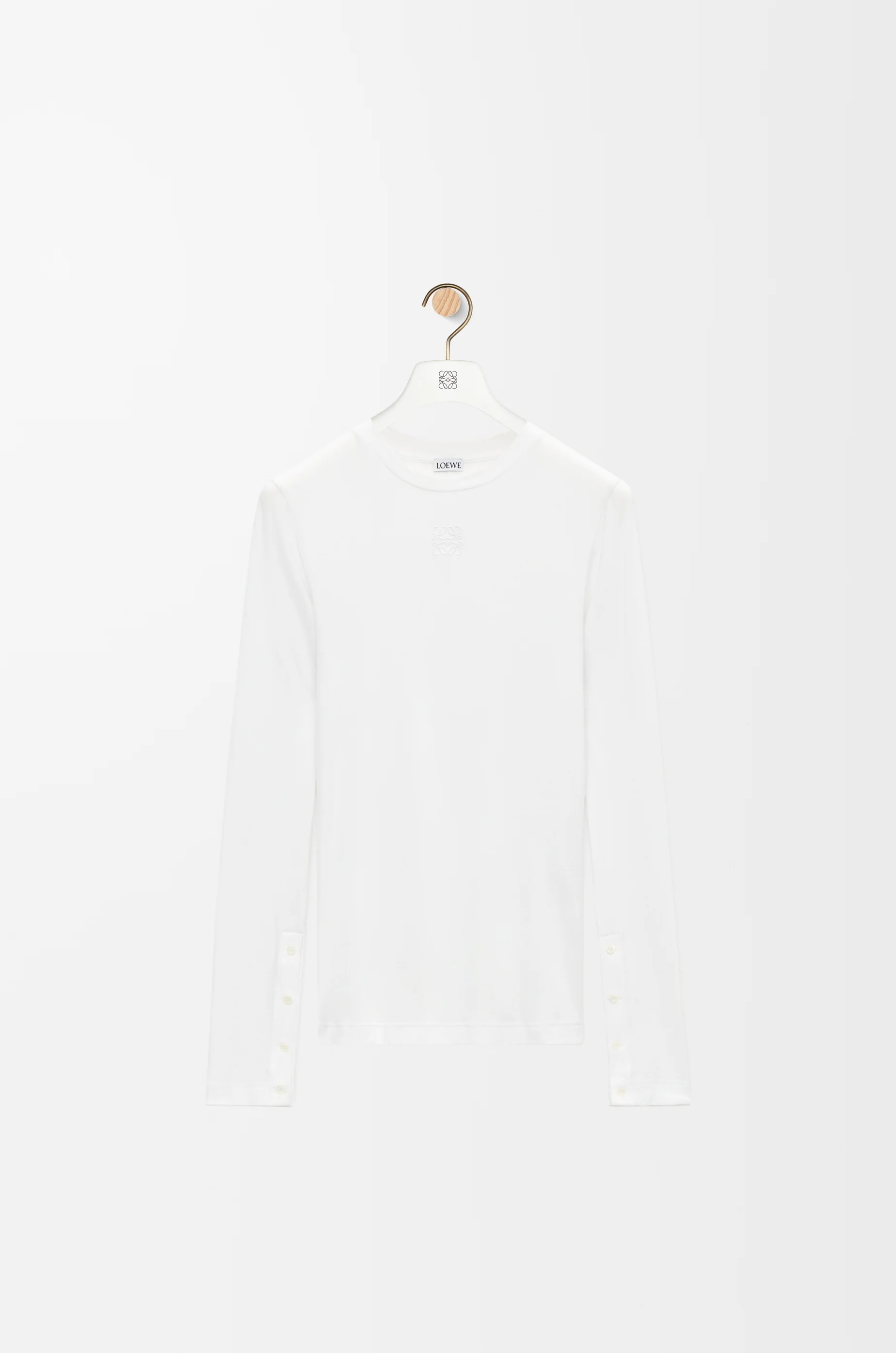Top crafted in lightweight stretch soft modal jersey. - Slim fit - Regular length - Crew neck - Long sleeves - Buttoned cuffs - Mother-of-pearl buttons - Anagram embroidery placed at the front Details - Colour: White - Main material: Modal - Weight: 0.2 kg - Model ID: S359Y23XA1 - Made in: Portugal