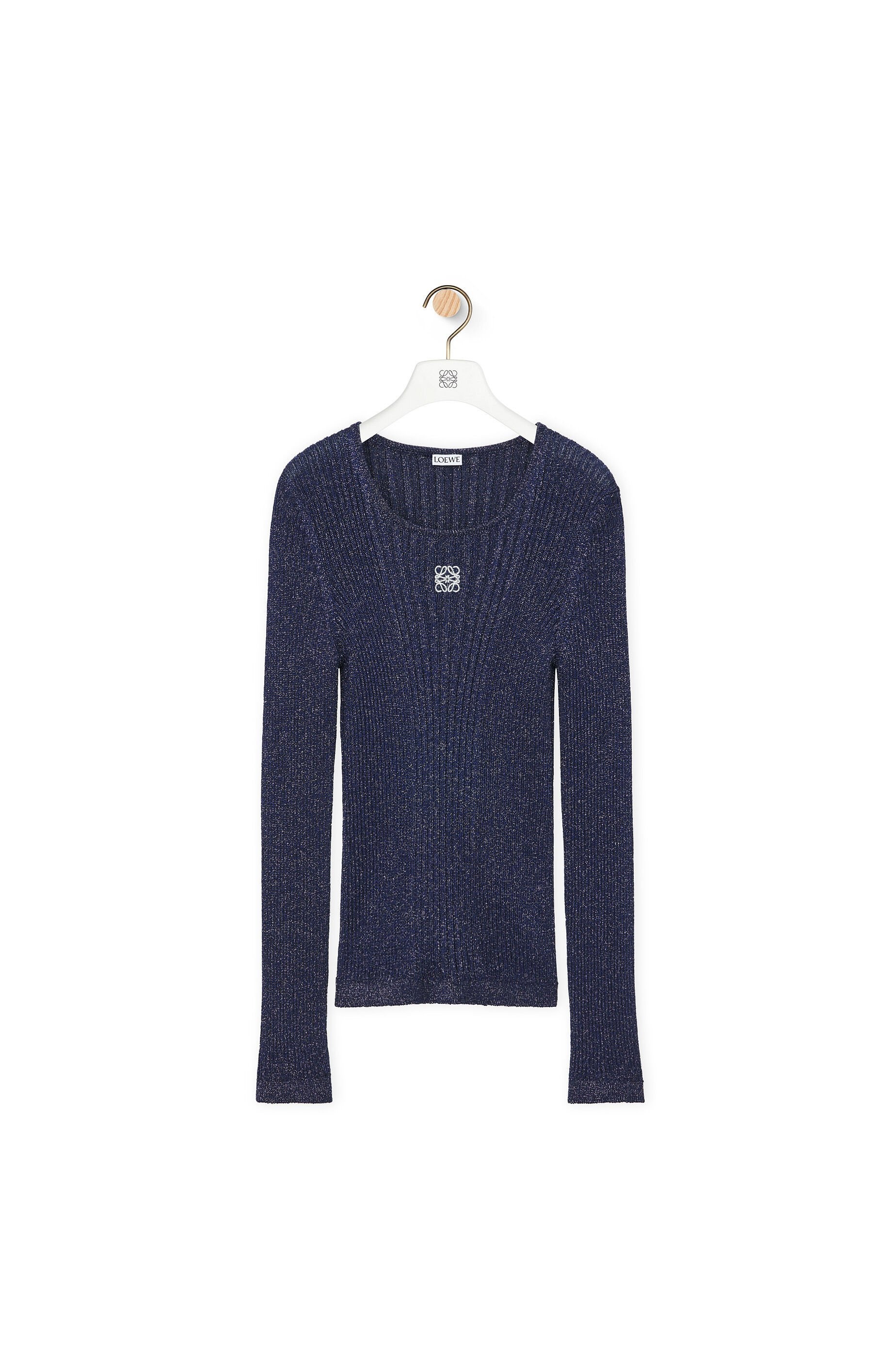Long sleeve top crafted in lightweight lurex. - Rib knit - Small fit - Regular length - Scoop neck - Anagram embroidery placed at the front Details - Colour: Dark Blue - Main material: Viscose/Polyester/Polyamide - Weight: 0.4 kg - Model ID: S359Y14KER - Made in: Italy