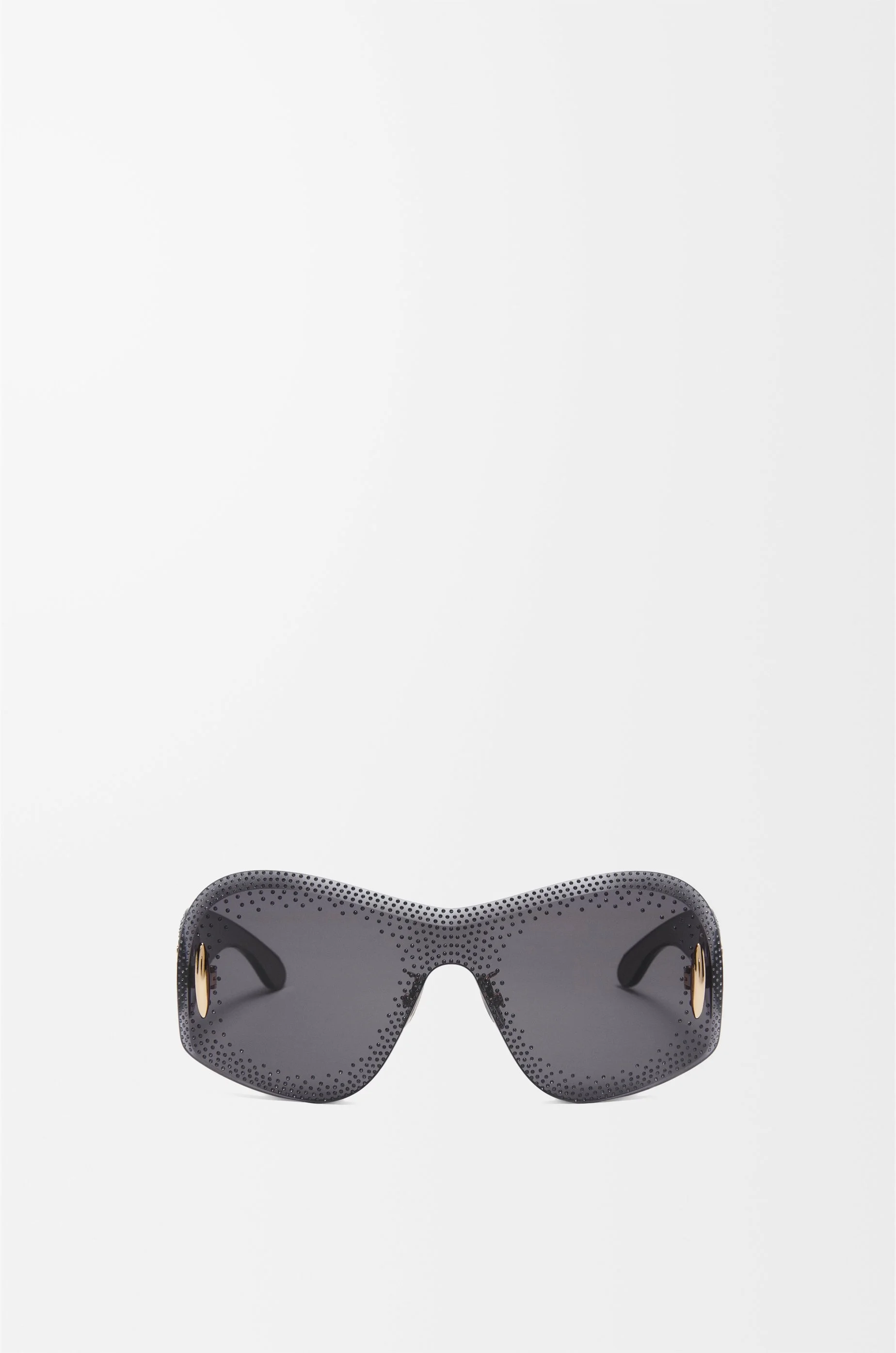 Mask sunglasses in nylon featuring crystal embellishments on the lens and temple. - International fit - 100% UVA/UVB protection - Gold-finish metal Anagram Colour: Smoke Main material: Nylon Weight: 0.055 kg Made in: Italy