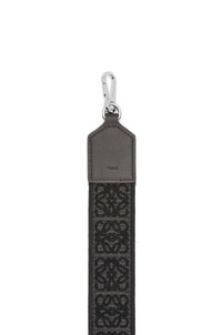 Detachable strap in calfskin and jacquard with a LOEWE pattern on one side and an Anagram pattern on the reverse. This strap is part of the LOEWE x Suna Fujita collaboration. - Mandragora embroideries - 4cm wide - Hook fastenings - Detachable and adjustable - Embossed Anagram Details - Colour: Dark Grey - Metallic colour: Palladium - Main material: Jacquard/Calf - Strap length: 65 - 105 cm - Weight: 0.13 kg - Volume: SS24 W's Spring Drop 1 - Width (cm): 105 - Depth (cm): 4 - Width (inch): 41.3 - Depth (inch): 1.6 - Model ID: C604T87X28 - CIL: 0010972503 - Made in: Spain