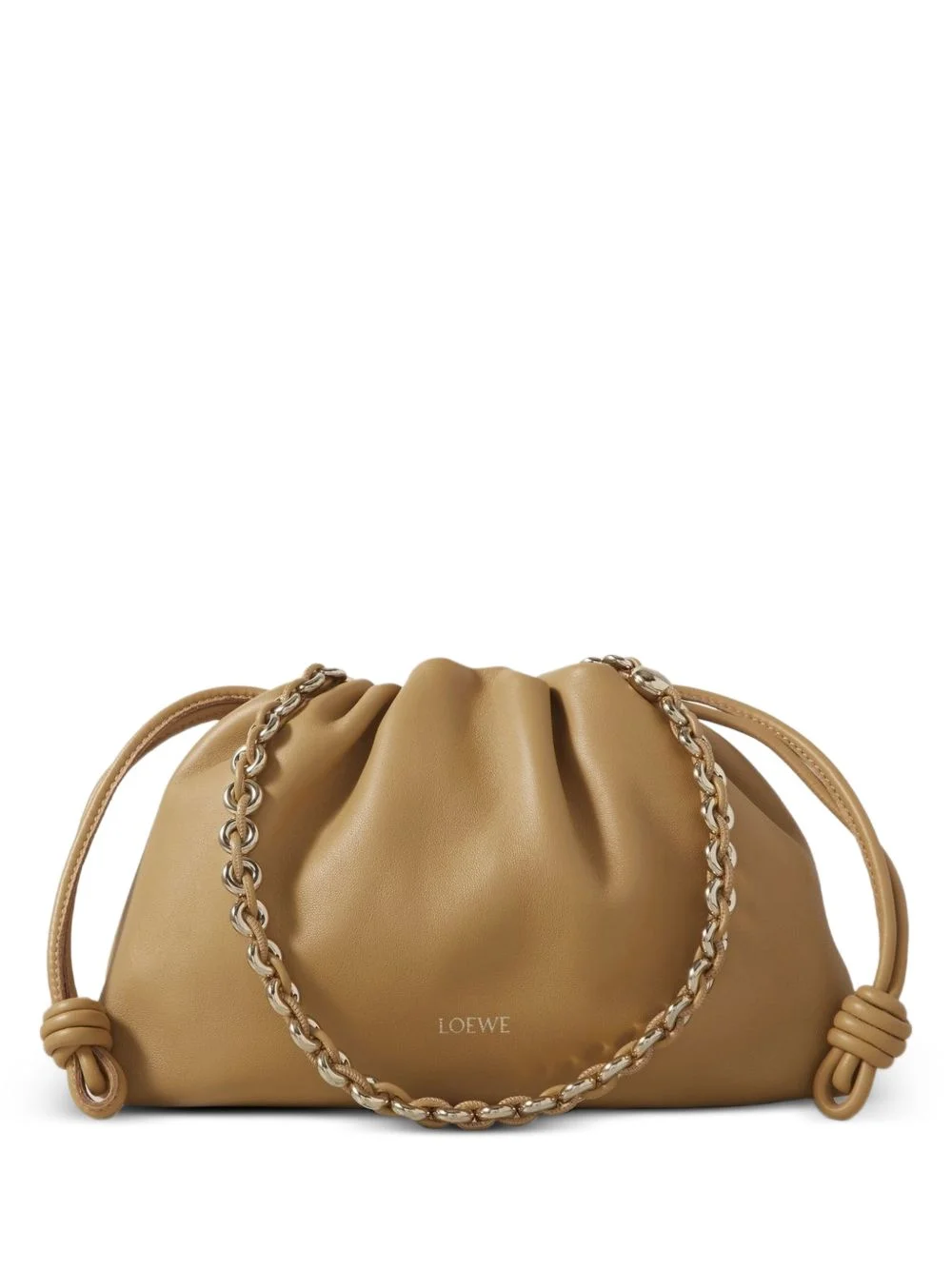 medium Flamenco chain-handle shoulder bag Highlights - Yellow - Chain embellishment - Gathered detail - Knot detail - Internal logo patch Imported Composition Outer: Calf Leather 100% Lining: Calf Suede 100% SIZE & FIT Measurement DEPTH 4.13 in(10.5 cm) HEIGHT 7.87 in(20 cm) WIDTH 11.81 in(30 cm)