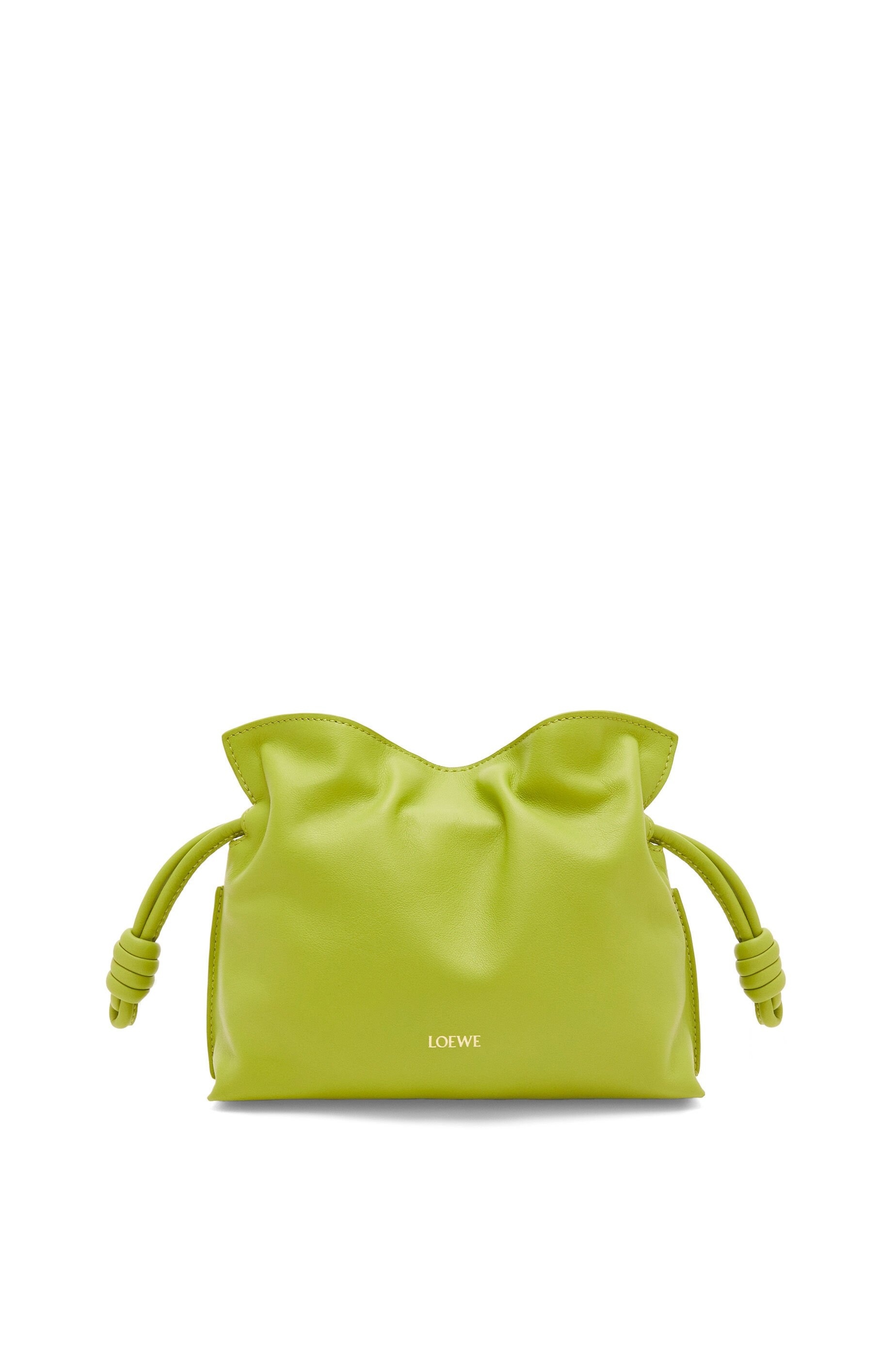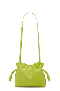 The Flamenco is an iconic design launched in the 1980s. It cinches closed using drawstring pulls finished in signature coiled knots. This mini version is crafted in nappa calfskin. - Shoulder, crossbody or hand carry - Detachable and adjustable strap - Discreet magnetic closure - Suede lining - Gold or silver embossed LOEWE Details - Colour: Meadow Green - Metallic colour: Gold - Main material: Nappa Calf - Strap length: 96 - 120 cm - Weight: 0.3 kg - Height (cm): 18 - Width (cm): 23.9 - Depth (cm): 9 - Height (inch): 7.1 - Width (inch): 9.4 - Depth (inch): 3.5 - Model ID: A411FC2X73 - CIL: 0011091451 - Made in: Spain