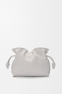 The Flamenco clutch is a soft and slouchy bag with a cinched closure and historical knot drawstrings. This medium version is crafted in nappa calfskin with intarsio squares inspired by Josef Albers's "Homage to the Square" series. This bag is part of the LOEWE x Albers collection. - Shoulder, crossbody or hand carry - Detachable and adjustable strap - Magnetic closure - Suede lining - Gold embossed LOEWE, gold embossed LOEWE and Josef Albers signature Colour: Pale Grey/Light Citrine Metallic colour: Palladium Main material: Nappa Calf Strap length: 96 - 120 cm Strap drop: 38 - 44 cm Weight: 0.54 kg Height: 24.5 cm Width: 30 cm Depth: 10.5 cm Made in: Spain