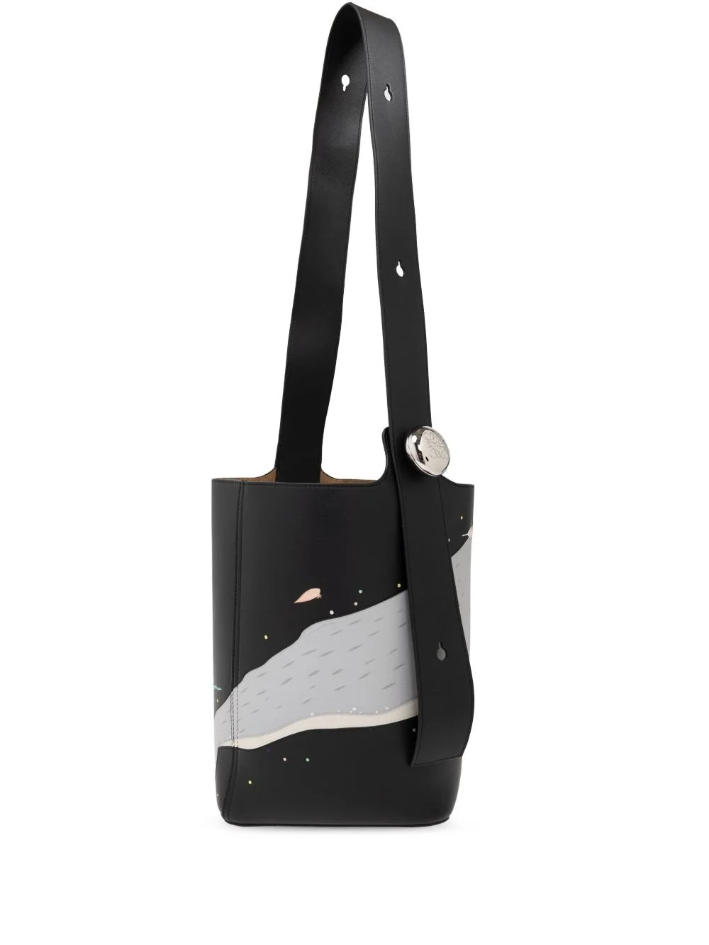 medium Whale Pebble bucket bag Highlights - Black - Adjustable shoulder strap - Concealed magnetic fastening - Internal slip pocket Imported Composition Outer: CALFSKIN 100% Lining: Calf Suede 100% SIZE & FIT Measurement DEPTH 9.25 in(23.5 cm) HEIGHT 11.02 in(28 cm) WIDTH 9.64 in(24.5 cm)