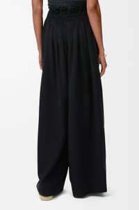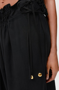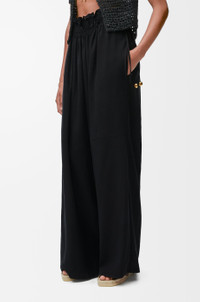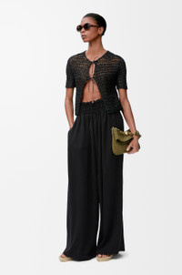 Trousers in lightweight fluid lyocell. - Relaxed fit, long length - High waist - Elasticated waist with gathered seams - Side tie fastening with Anagram Pebble embellishments - Side zip fastening Colour: Black Main material: Lyocell Weight: 0.7 kg Made in: Spain Materials & care Main Material: 100% lyocell