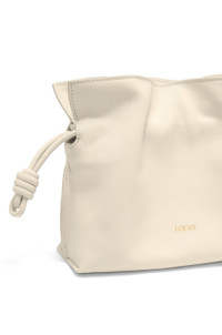 Launched in the 1980s, the Flamenco Clutch cinches closed using drawstring pulls finished in signature coiled knots. This mini version is crafted in nappa calfskin. - Shoulder, crossbody or hand carry - Detachable and adjustable strap - Discreet magnetic closure - Gold suede lining - Gold or silver LOEWE embossed Details - Colour: Angora - Metallic colour: Gold - Main material: Nappa Calf - Strap length: 96 - 120 cm - Weight: 0.3 kg - Height (cm): 18 - Width (cm): 23.9 - Depth (cm): 9 - Height (inch): 7.1 - Width (inch): 9.4 - Depth (inch): 3.5 - Model ID: A411FC2X73 - CIL: 0010965978 - Made in: Spain