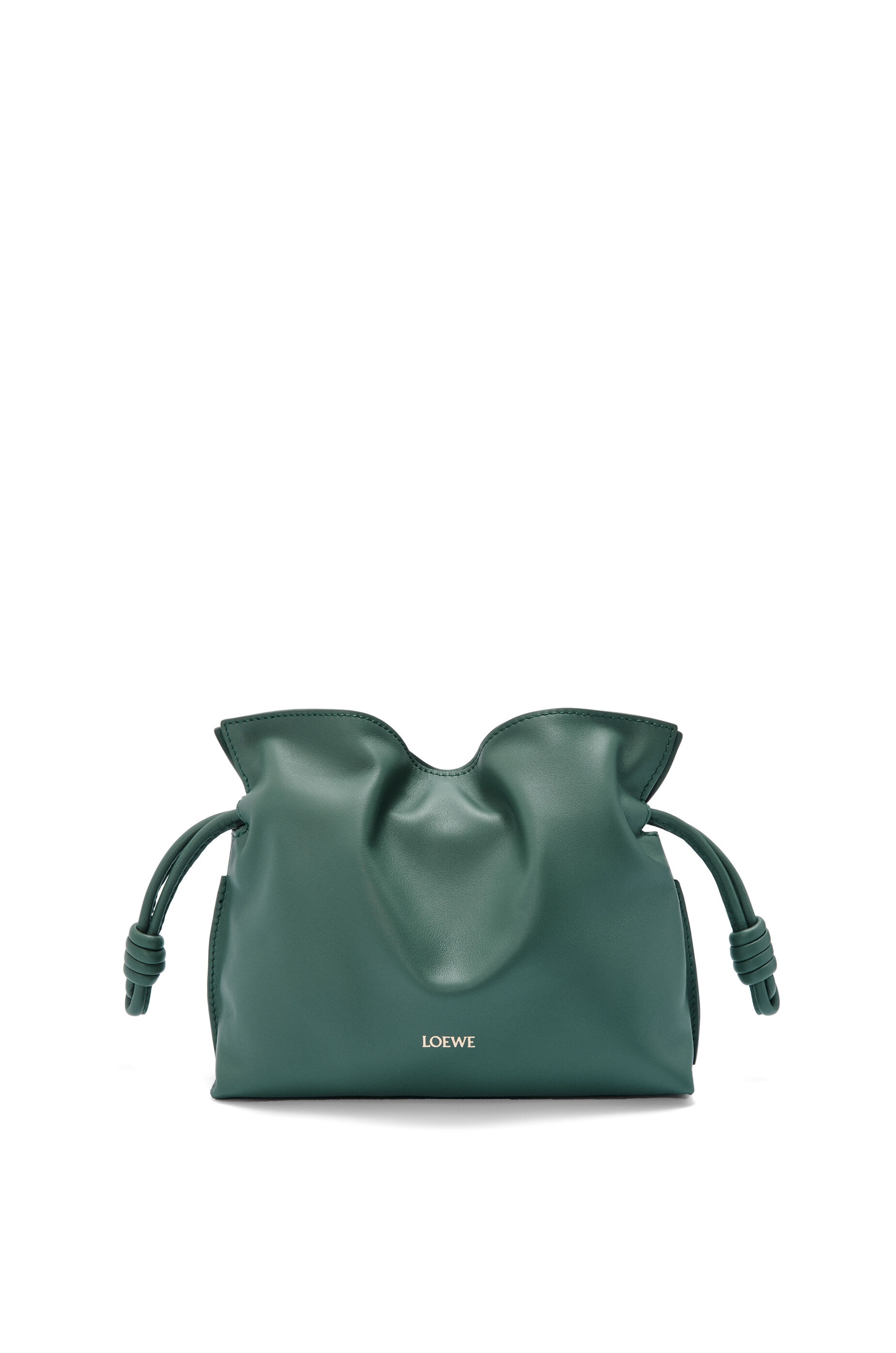 The Flamenco is an iconic design launched in the 1980s. It cinches closed using drawstring pulls finished in signature coiled knots. This mini version is crafted in nappa calfskin. - Shoulder, crossbody or hand carry - Detachable and adjustable strap - Magnetic closure - Suede lining - Gold or silver embossed LOEWE Details - Colour : Vetiver - Metallic colour : Gold - Main material : Nappa Calf - Strap length : 96 - 120 cm - Strap Drop : 36 - 49 cm - Weight : 0.3 kg - Height (cm) : 18 - Width (cm) : 23.9 - Depth (cm) : 9 - Height (inch) : 7.1 - Width (inch) : 9.4 - Depth (inch) : 3.5 - Model ID : A411FC2X73 - CIL : - 0011189545 - Made in : Spain