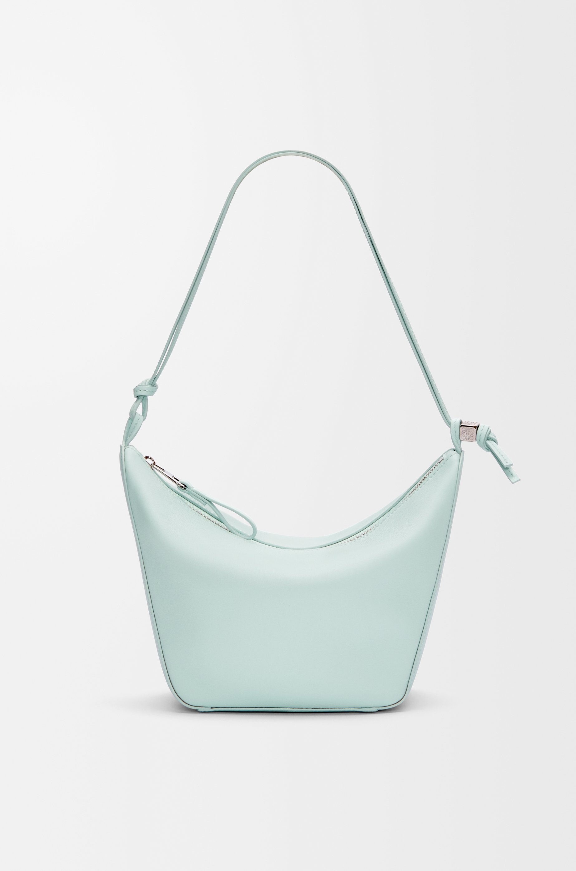The Hammock hobo is a streamlined variation on the Hammock, whose silhouette is revisited as a versatile sling bag. This mini version is crafted in classic calfskin. - Shoulder, crossbody or hand carry - Additional longer strap - Zip closure with calfskin pull - Herringbone cotton canvas lining - Anagram dice, embossed Anagram Colour: Frozen Metallic colour: Palladium Main material: Classic Calf Strap length: 111 - 121 cm Strap drop: 63 - 68 cm Handle drop: 18 cm Weight: 0.28 kg Height: 17 cm Width: 28 cm Depth: 9.5 cm Made in: Spain