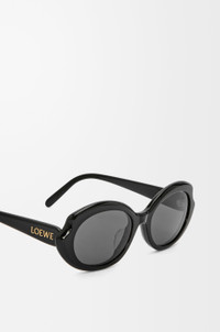 Oval-shaped sunglasses in a slim acetate construction with LOEWE in a gold finish on the temple. - Adjusted fit - 100% UVA/UVB protection Details - Colour : Black - Main material : Acetate - Weight : 0.048 kg - Lens size (cm) : 5.5 - Lens size (inches) : 2.2 - Bridge size (cm) : 1.9 - Bridge size (inches) : 0.7 - Temple size (cm) : 14.5 - Temple size (inches) : 5.7 - Model ID : G735SUNX13 - CIL : - 0011082823 - Made in : Italy