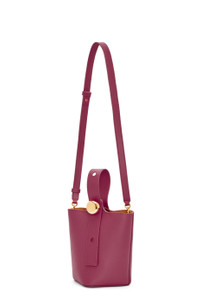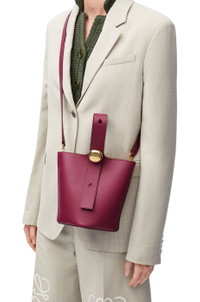 The Pebble Bucket is defined by minimalistic lines and a functional Anagram Pebble that allows to adjust strap length. This mini version is crafted in calfskin. - Crossbody, shoulder or hand carry - Adjustable and removable strap - Internal pocket - Bonded suede lining - Anagram engraved Pebble Details - Colour : Crimson - Metallic colour : Gold - Main material : Mellow Calf - Strap length : 96 - 119 cm - Strap drop : 45 - 57 cm - Handle drop : 7 - 15 cm - Weight : 0.34 kg - Height (cm) : 19.5 - Width (cm) : 16 - Depth (cm) : 16 - Height (inch) : 7.7 - Width (inch) : 6.3 - Depth (inch) : 6.3 - Model ID : AANBBBMX01 - CIL : - 0011092533 - Made in : Spain