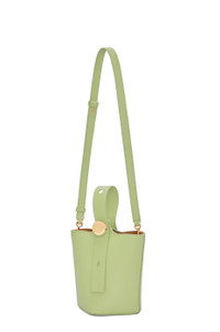 The Pebble Bucket is defined by minimalistic lines and a functional Anagram Pebble that allows to adjust strap length. This mini version is crafted in calfskin. - Crossbody, shoulder or hand carry - Adjustable and removable strap - Internal pocket - Bonded suede lining - Anagram engraved Pebble Details - Colour : Light Pear - Metallic colour : Gold - Main material : Mellow Calf - Strap length : 96 - 119 cm - Strap drop : 45 - 57 cm - Handle drop : 7 - 15 cm - Weight : 0.34 kg - Height (cm) : 19.5 - Width (cm) : 16 - Depth (cm) : 16 - Height (inch) : 7.7 - Width (inch) : 6.3 - Depth (inch) : 6.3 - Model ID : AANBBBMX01 - CIL : - 0011182623 - Made in : Spain