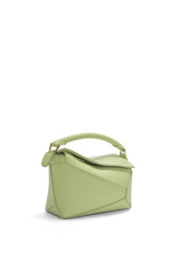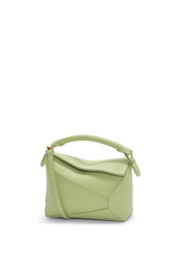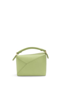 The Puzzle bag is the debut bag for LOEWE by Creative Director Jonathan Anderson. A cuboid shape and precise cutting technique create Puzzle’s distinctive geometric lines. This mini version is crafted in classic calfskin. - Shoulder, crossbody or hand carry - Detachable and adjustable strap - Top handle - Zip closure with calfskin puller - Herringbone cotton canvas lining - Embossed Anagram Details - Colour : Light Pear - Metallic colour : Gold - Main material : Classic Calf - Strap length : 108.5 - 137 cm - Strap drop : 54.5 - 68.5 cm - Handle drop : 4 cm - Weight : 0.24 kg - Height (cm) : 12.5 - Width (cm) : 18 - Depth (cm) : 8 - Height (inch) : 4.9 - Width (inch) : 7.1 - Depth (inch) : 3.1 - Model ID : A510P88X26 - CIL : - 0011182078 - Made in : Spain