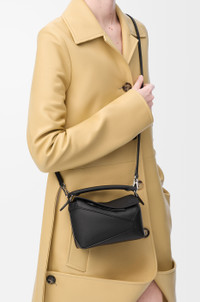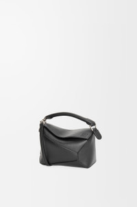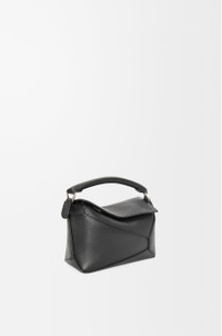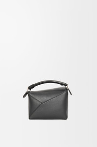The Puzzle bag is the debut bag for LOEWE by Creative Director Jonathan Anderson. A cuboid shape and precise cutting technique create Puzzle’s distinctive geometric lines. This mini version is crafted in classic calfskin. - Shoulder, crossbody, top handle or clutch carry - Removable and adjustable shoulder strap - Zip closure with calfskin pull - Customisable with strap and personalisation charms - Herringbone cotton canvas lining - Embossed Anagram Details - Colour: Black - Metallic colour: Palladium - Main material: Classic Calf - Strap length: 108.5 - 137 cm - Handle drop: 4 cm - Weight: 0.24 kg - Height (cm): 12.5 - Width (cm): 18 - Depth (cm): 8 - Height (inch): 4.9 - Width (inch): 7.1 - Depth (inch): 3.1 - Model ID: A510P88X26 - CIL: 0010947919 - Made in: Spain