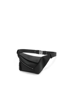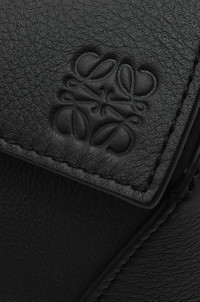 The Puzzle bag is the debut bag for LOEWE by Creative Director Jonathan Anderson. A cuboid shape and precise cutting technique create Puzzle’s distinctive geometric lines. This mini bumbag version is crafted in classic calfskin with overlapped edges. - Shoulder or crossbody carry - Adjustable shoulder strap featuring metal clasp closure with engraved LOEWE - Zip closure with calfskin zip pull - External zip pocket - Herringbone cotton canvas lining - Embossed Anagram Details - Colour: Black - Metallic colour: Palladium - Main material: Classic Calf - Strap length: 80 - 136 cm - Weight: 0.3 kg - Height (cm): 11.8 - Width (cm): 17.5 - Depth (cm): 7.5 - Height (inch): 4.6 - Width (inch): 6.9 - Depth (inch): 3 - Model ID: B510EB1X03 - CIL: 0010965705 - Made in: Spain