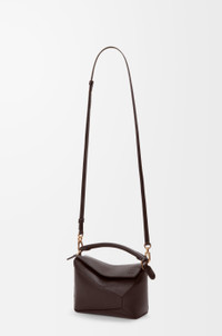 The Puzzle Edge is defined by its distinctive geometric lines and its cuboid form. It differs to the classic construction in its overlapped panels with single stitch lines. This mini version is crafted in soft grained calfskin. - Shoulder, crossbody or hand carry - Detachable and adjustable strap - Zip closure with calfskin pull - Herringbone cotton canvas lining - Embossed Anagram Colour: Dark Chestnut Metallic colour: Gold Main material: Soft Grained Calf Strap length: 108.5 - 137 cm Strap drop: 54.5 - 68.5 cm Handle drop: 4 cm Weight: 0.27 kg Height: 12.5 cm Width: 18 cm Depth: 8 cm Made in: Spain