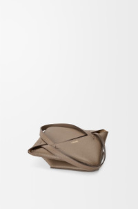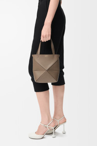 The Puzzle Fold's lightweight geometric structure is designed to fold completely flat, making it a perfect tote to travel with. This mini version is crafted in newly-offered soft grained calfskin. - Shoulder, crossbody or hand carry - Detachable and adjustable strap - Suede lining - Gold embossed LOEWE Colour: Taupe Metallic colour: Gold Main material: Soft Grained Calf Strap length: 99-114 cm Strap drop: 48 - 55 cm Handle drop: 14 cm Weight: 0.1765 kg Height: 20 cm Width: 16.5 cm Depth: 9.5 cm Made in: Spain