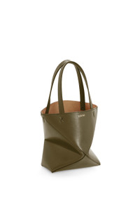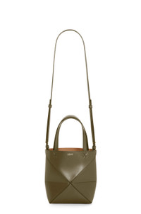 The Puzzle Fold Tote takes the iconic bag’s signature geometric lines and reimagines them in graphic and architectural panels that allow the bag to fold completely flat, making it the perfect travel companion. Soft, lightweight and inventively crafted, it is finished with discreet LOEWE branding. This mini version is crafted in shiny calfskin. - Shoulder, crossbody or hand carry - Detachable and adjustable strap - Suede lining - Gold embossed LOEWE Details - Colour: Dark Khaki Green - Metallic colour: Gold - Main material: Shiny Calf - Strap length: 99 - 114 cm - Handle drop: 14 cm - Weight: 0.2 kg - Height (cm): 20 - Width (cm): 16.5 - Depth (cm): 9.5 - Height (inch): 7.9 - Width (inch): 6.5 - Depth (inch): 3.7 - Model ID: A657V25X01 - CIL: 0010896793 - Made in: Spain