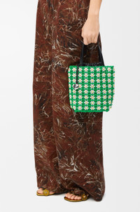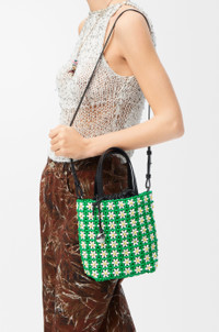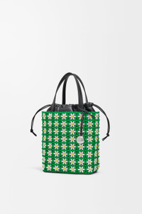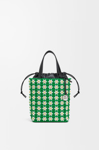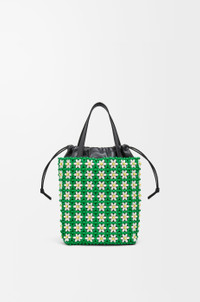 Tote in multicoloured beads with a floral pattern featuring a lambskin drawstring pouch with a removable Anagram Pebble charm. - Crossbody, shoulder or hand carry - Removable and adjustable strap, calfskin top handles - Drawstring closure - Engraved Anagram Colour: Tropical Green/White Metallic colour: Palladium Main material: Beads/Calf Strap length: 99-114 cm Strap drop: 48 - 55 cm Handle drop: 14 cm Weight: 0.61 kg Height: 20 cm Width: 16.5 cm Depth: 9.5 cm Made in: Spain
