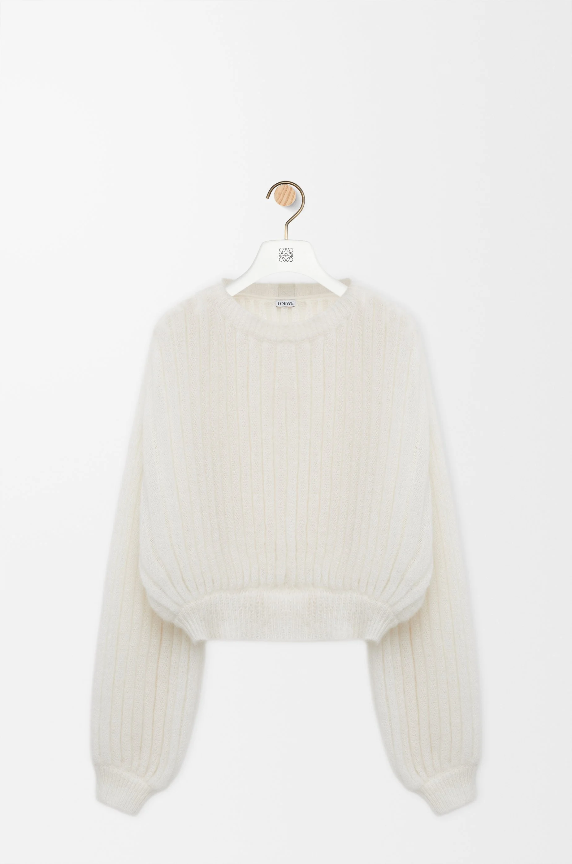 Sweater in medium-weight brushed mohair blend featuring balloon sleeves. - Relaxed fit, regular length - Round neck - Ribbed collar, cuffs and hem - Anagram embossed leather tab placed at the back Colour: White Main material: Mohair/cotton Weight: 0.42 kg Made in: Italy Materials & care Main Material: 47% mohair 25% polyamide 23% cotton 5% wool