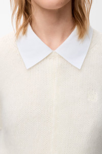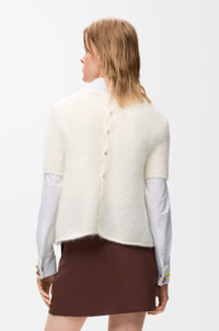 Sweater in medium-weight mohair blend featuring a trapeze silhouette with button fastening at the back. - Regular fit, short length - Round neck - Anagram embroidery placed on the chest Colour: White Main material: Mohair/Polyamid/Wool Weight: 0.3 kg Made in: Italy Materials & care Main Material: 65% mohair 29% polyamide 5% wool 1% elastane