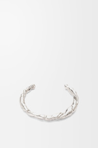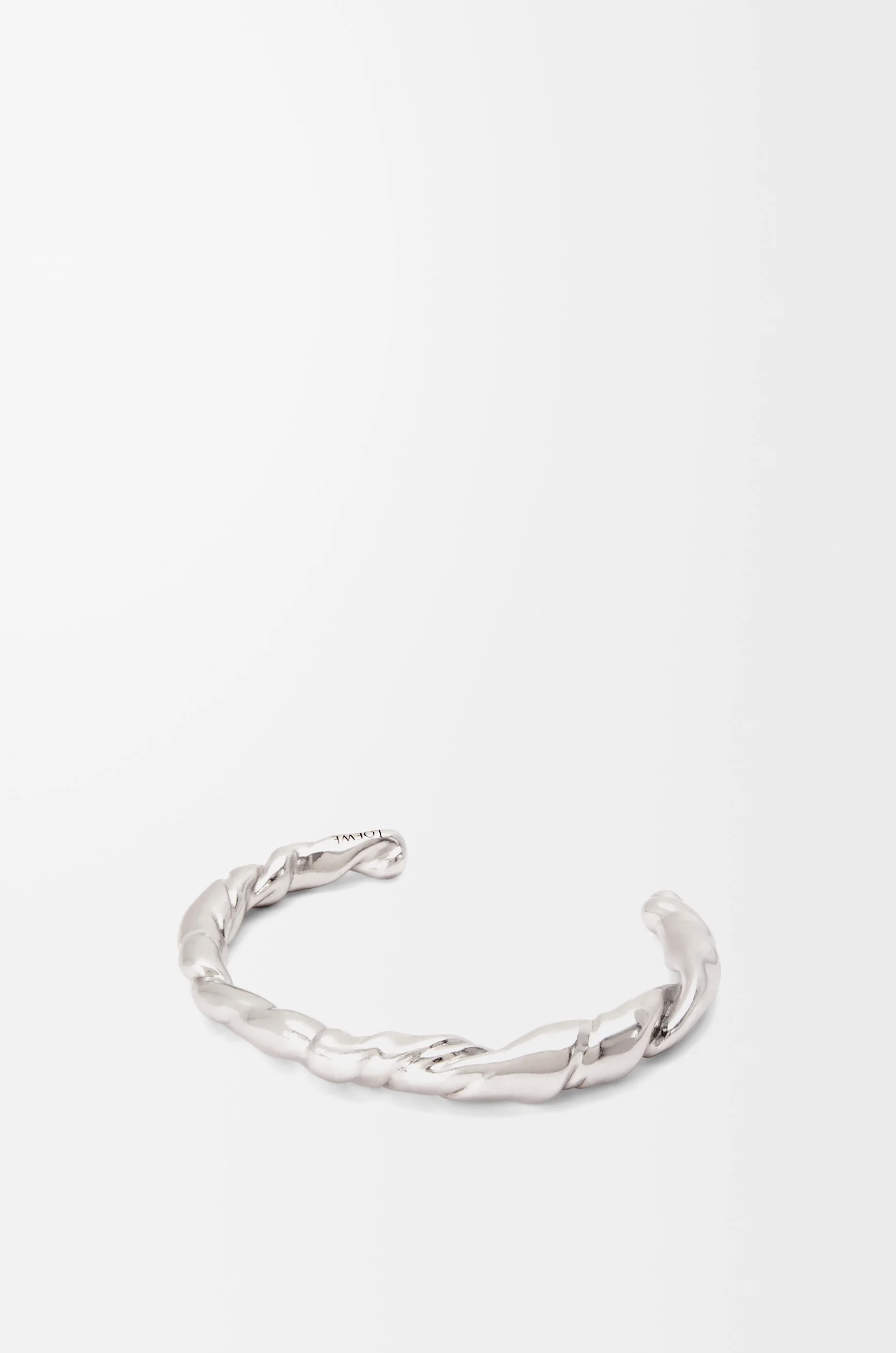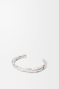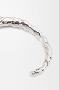 A cuff inspired by the twists of nappa leather. This thin version is crafted in sterling silver. - 925/1000 Silver - Engraved with LOEWE - Small: 14cm wide with a 2.7cm opening - Medium: 15cm wide with a 2.85cm opening - Large: 16cm wide with a 3cm opening Details - Colour : Silver - Metallic colour : Silver - Main material : Sterling Silver - Weight : 0.043 kg - Height (cm) : 5.1 - Width (cm) : 6.5 - Depth (cm) : 0.9 - Height (inch) : 2 - Width (inch) : 2.6 - Depth (inch) : 0.4 - Model ID : J917240X05 - Made in : Italy