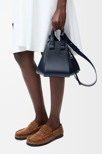 The Hammock is a multifunctional bag with supple side panels that release to change its shape. This compact version is crafted in soft grained calfskin. - Shoulder, crossbody or hand carry - Detachable and adjustable strap, top handles - Internal hook closure - One external zip pocket, two internal slip pockets - Herringbone cotton canvas lining - Embossed Anagram Details - Colour : Deep Navy - Metallic colour : Gold - Main material : Soft Grained Calf - Strap length : 78 - 85 cm - Strap Drop : 53 - 57 cm - Handle drop : 10 cm - Weight : 0.56 kg - Height (cm) : 20.8 - Width (cm) : 14.4 - Depth (cm) : 19.5 - Height (inch) : 8.2 - Width (inch) : 5.7 - Depth (inch) : 7.7 - Model ID : A538H13X23 - CIL : - 0011208378 - Made in : Spain
