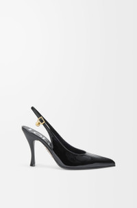 Pump in mixed leather featuring an asymmetric design with a slingback strap adorned with gold Pebble hardware. - 90mm Comic heel - Adjustable square buckle - Engraved Anagram on Pebble - Leather outsole Colour: Black Main material: Mixed leather Weight: 0.4 kg Made in: Italy