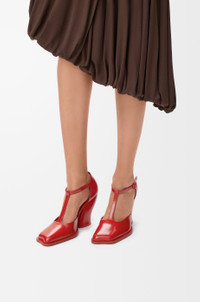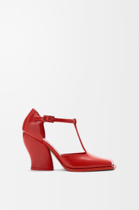 T-bar pump in brushed calfskin featuring an asymmetric wavy toe shape and the Onda chunky heel. - 90mm heel - LOEWE engraved adjustable buckle - Leather insole and outsole Colour: Red Main material: Brushed Calf Weight: 0.7 kg Made in: Italy