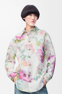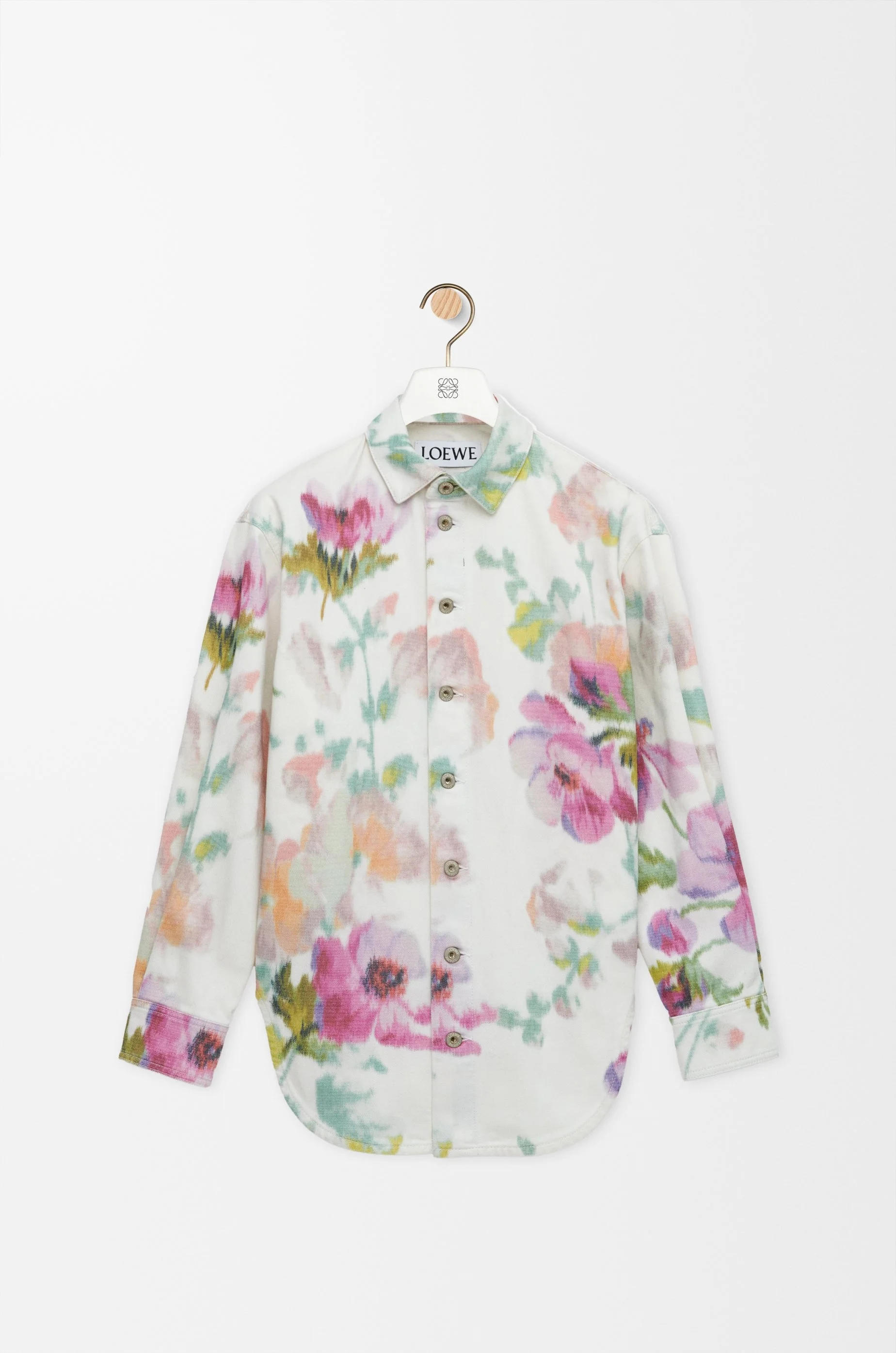 Overshirt in medium-weight cotton denim featuring an allover floral digital print. - Relaxed fit, long length - Classic collar - Button front fastening, buttoned cuffs - Box pleat at the back - LOEWE Anagram embossed leather patch placed at the back Colour: White/Pink Main material: Cotton Weight: 0.85 kg Made in: Italy Materials & care Main Material: 100% cotton