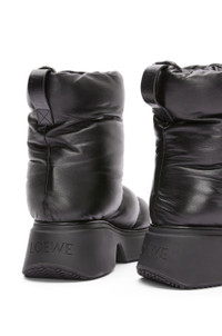 Pull on ankle boot with a quilted lambskin upper, a wedge rubber sole and an embossed LOEWE leather pull tab. Details - Colour: Black - Main material: Lamb - Heel height: 7 - Weight : 1.6 kg - Model ID: L814285X36 - Made in: Italy