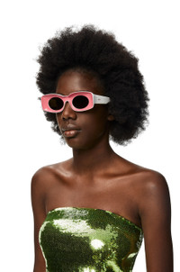Sunglasses with oval lenses and thick squared frames, thick curved side bars and coloured lenses. - 100% UVA/UVB protection Details - Colour: Coral Pink - Main material: Acetate - Weight : 0.062 kg - Height (cm): 0.508 - Width (cm): 0.1461 - Height (inch): 0.2 - Width (inch): 0.1 - Model ID: LW40033I - CIL: 0010697068 - Made in: Italy