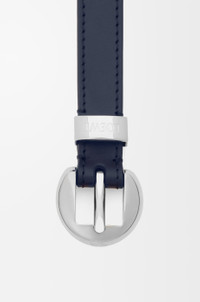 Belt in smooth calfskin. - Anagram Pebble buckle - Pin buckle - 2cm wide - Five holes regulation - Engraved Anagram Details - Colour : Deep Navy/Palladium - Metallic colour : Palladium - Main material : Smooth Calf - Weight : 0.11 kg - Depth (cm) : 2 - Depth (inch) : 0.8 - Model ID : E619Z15X28 - Made in : Spain